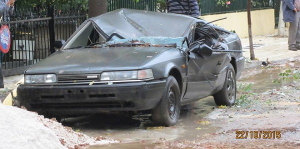 είχε ακινητοποιηθεί, λόγω της νεροποντής.